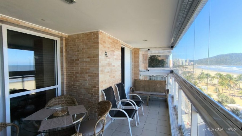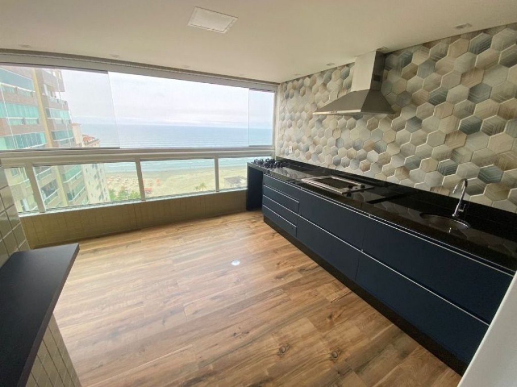 Apartamento FRENTE MAR com sala, sacada gourmet com churrasqueira, cozinha, área de serviço,