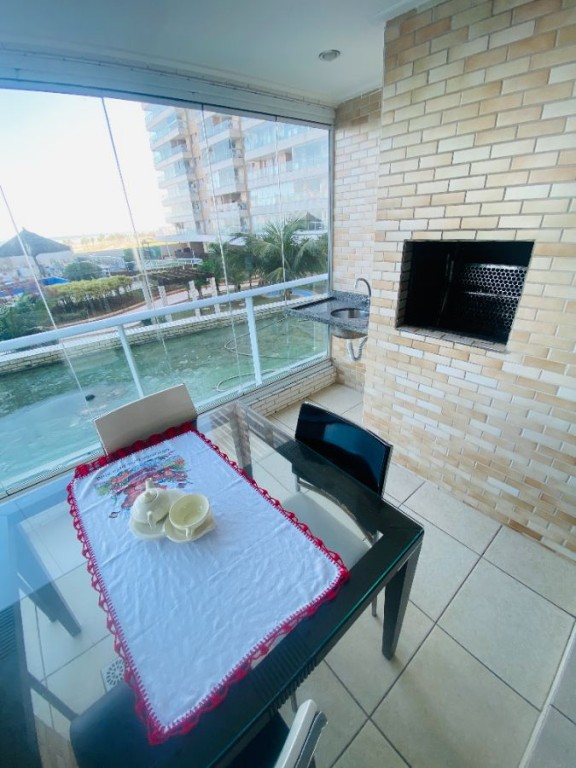 sacada da sala com pia e com churrasqueira, cozinha, wc
