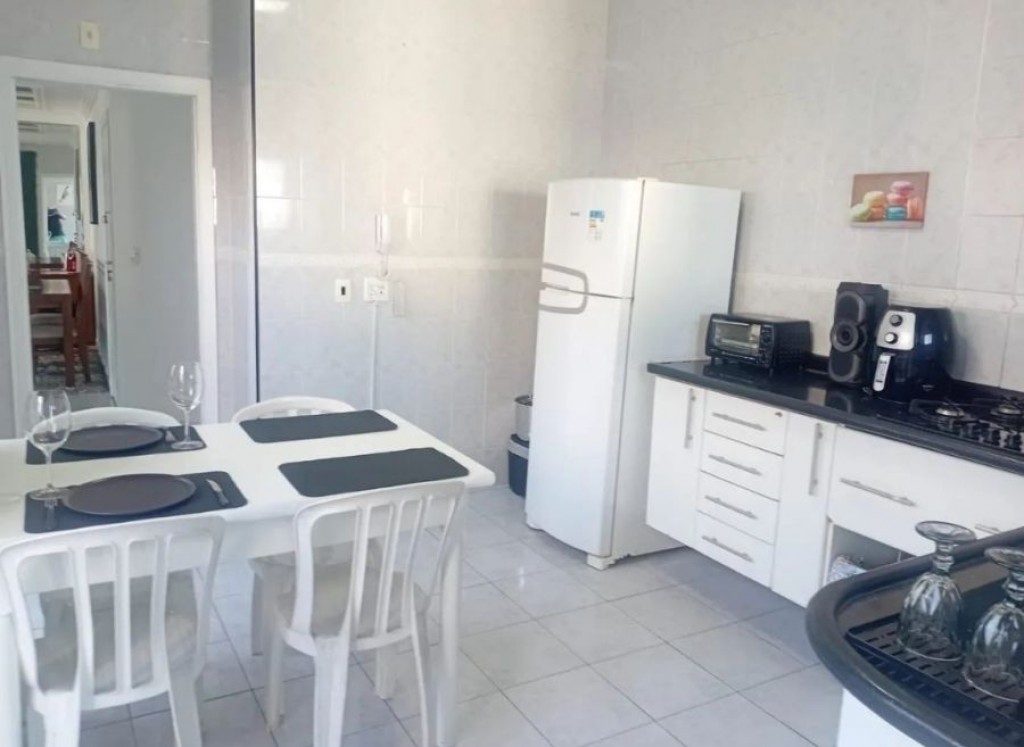 Cobertura mobiliada de 2 dormitórios, 2 suítes (ambas com sacada), lavabo, sala 3 ambientes com varanda vista mar, cozinha ampla, lavanderia, 2 vagas de garagem demarcadas, churrasqueira, piscina, banheiro com ducha e área útil 156 m²