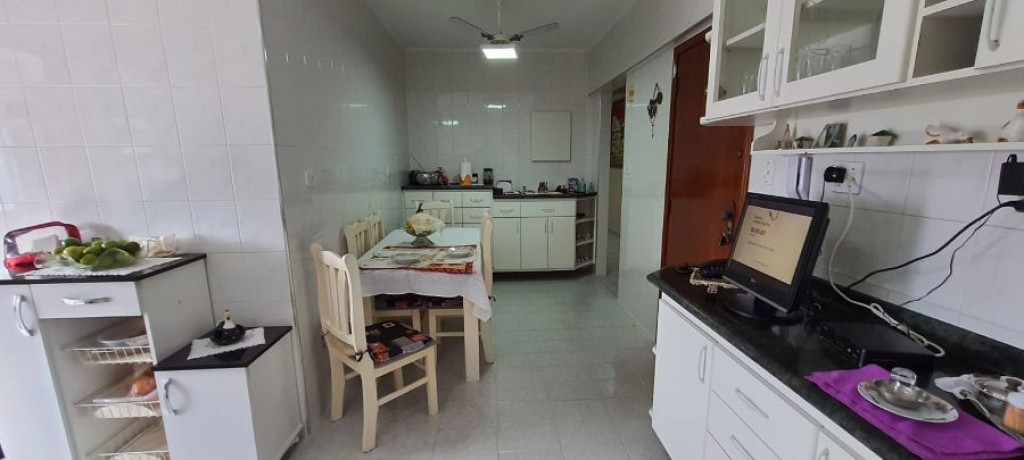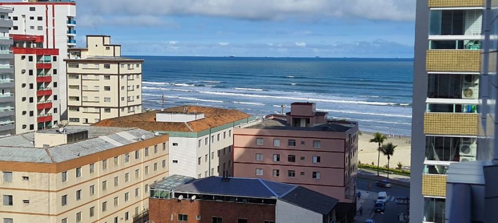 03 dormitórios, sala tv com sacada vista mar, sala de jantar, cozinha, banheiro social,