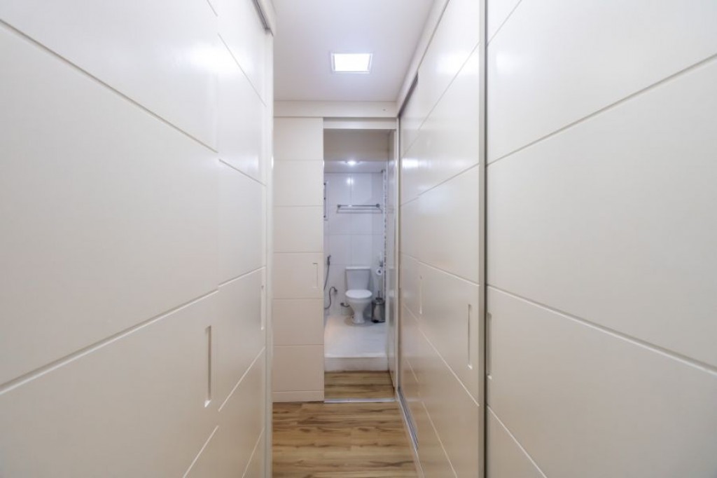 Roupeiro funcional no corredor íntimo.