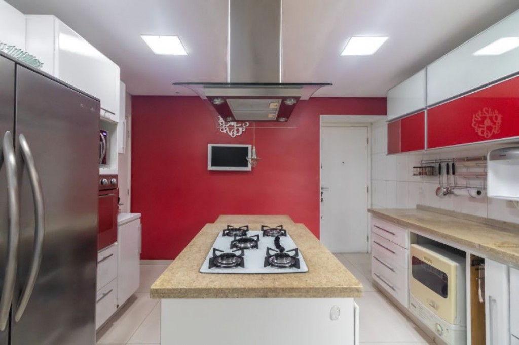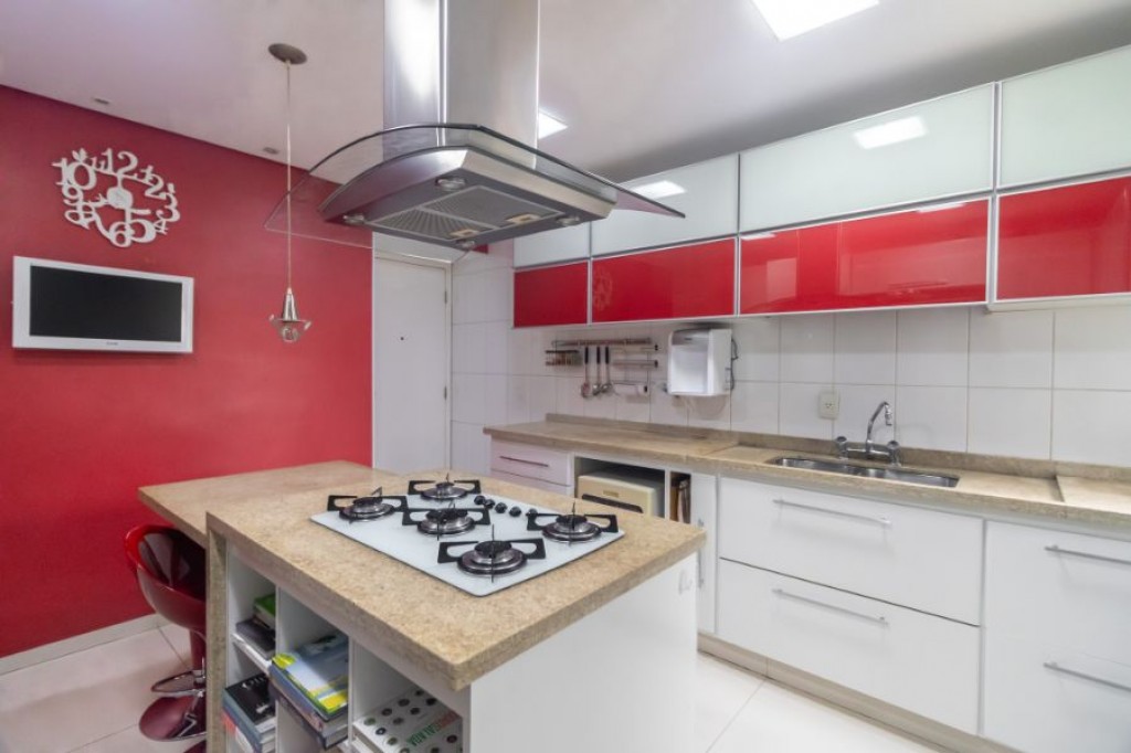 Cozinha ampla com ilha, cooktop e coifa: um verdadeiro convite à criatividade culinária.