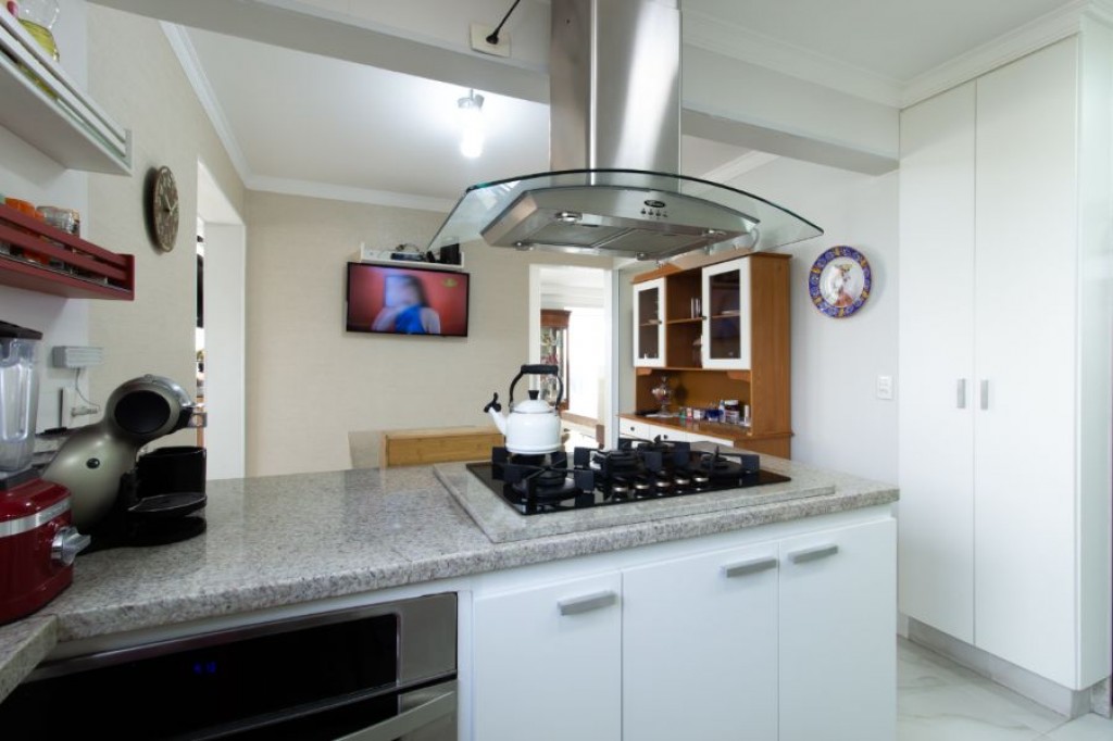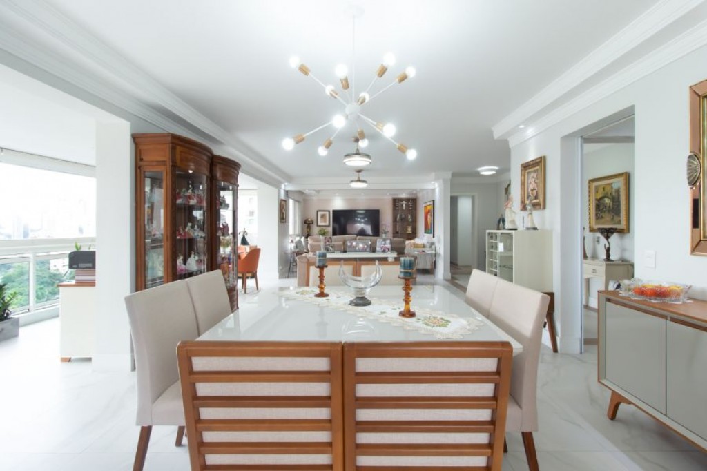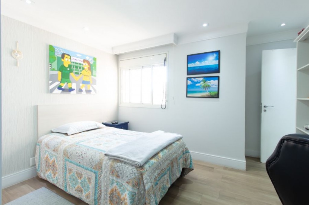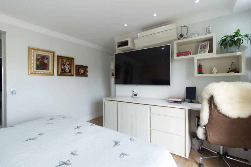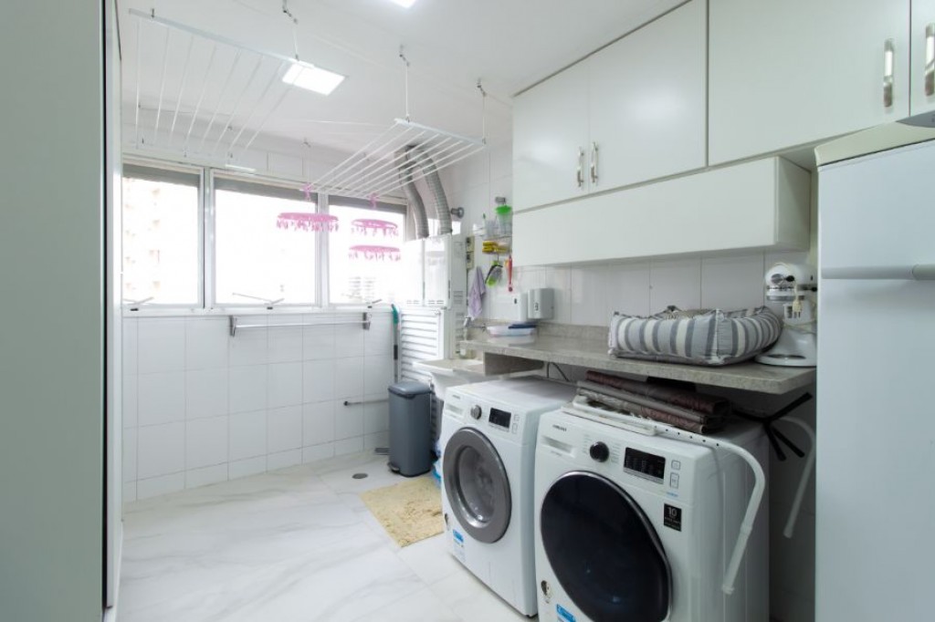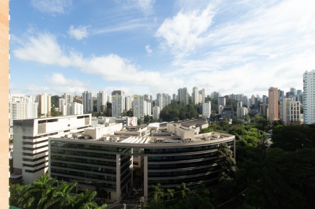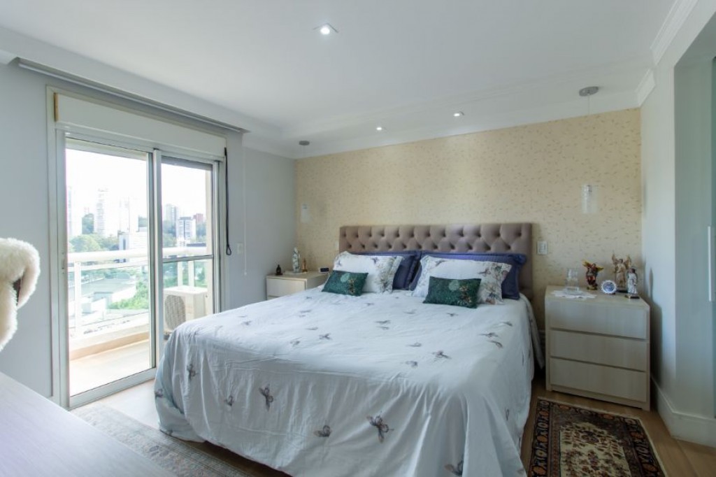 No Vila Andrade, apartamento de 261, com 4 quartos, 3 suítes, cozinha, área de serviço, quarto e banheiro de funcionário, living com três ambientes, varanda, 4 vagas de garagem, depósito.