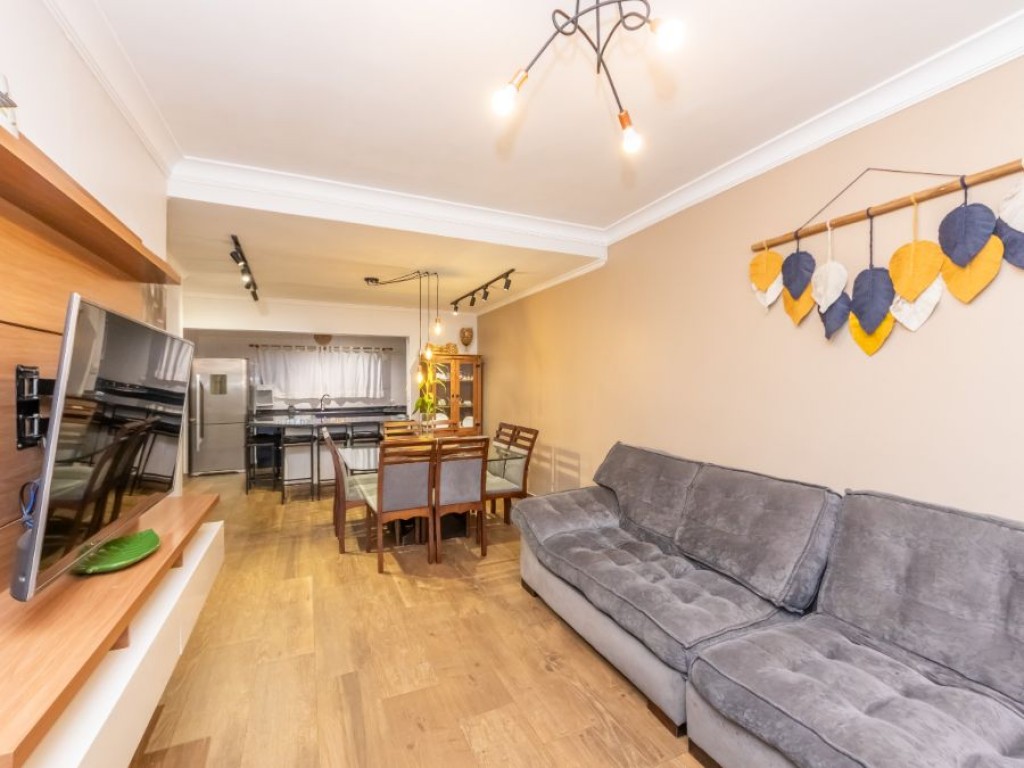 Sala ampla para dois ambientes, com ótima iluminação natural